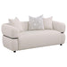 Boldly sculpted and beautifully tailored, this modern sofa set showcases a seamless blend of dramatic curves and soft textures. Each piece features wide waterfall bench seats, structured with pocket coil support for lasting comfort. Wrapped in textured beige upholstery, the forms are accentuated by a solid wood waistband detail that encircles the exterior in refined elegance. Designed for statement living rooms, this set balances artful design with plush, lounge-ready seating. Key Features: • Sculptural sofa set in beige upholstery features waterfall bench seats and plush accent pillows • Soft textured fabric upholstery offers a tailored appearance with subtle tonal variation throughout • Pocket coil construction provides lasting comfort, support, and seating resilience across all pieces • Solid wood waistband wraps each frame in sculptural detail for a refined, distinctive profile • Frames built from eucalyptus, engineered wood, and hardwood offer durability and strength • Designed with bold modern curves and clean tailoring to elevate contemporary living spaces