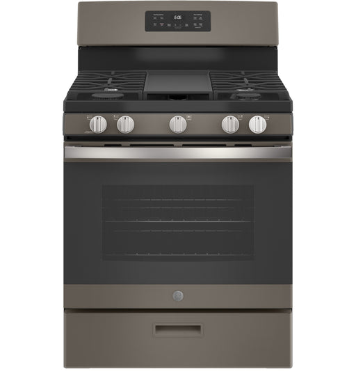 GE AppliancesIn stockGE¨ 30" Free-Standing Gas Range Feature-1: A large cooking surface gives you extra room for pots and pans of all sizes and lets cookware move easi...